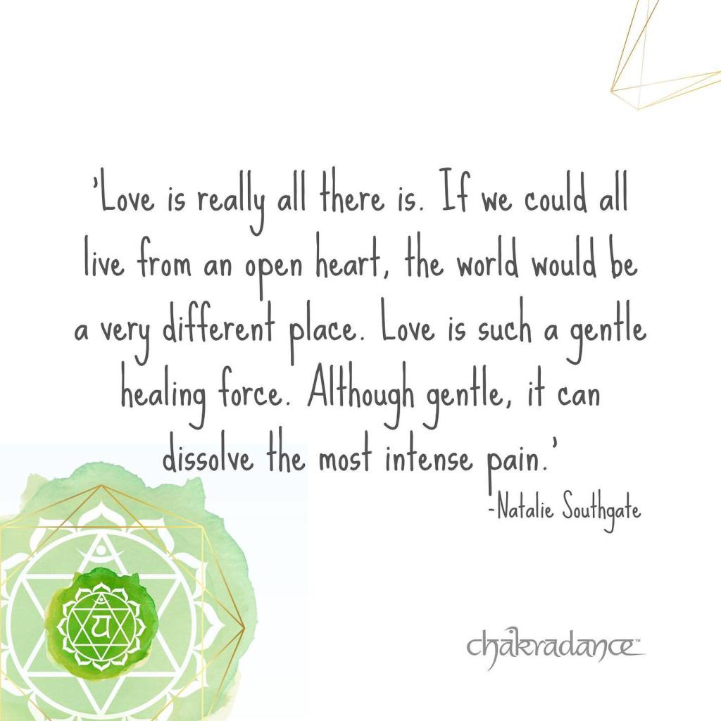 För att verkligen hitta frihet i våra liv måste vi försiktigt börja släppa den smärta vi har hållit fast vid, så att vi kan återvända till kärleken. Vi kan göra det genom att dansa hjärtchakrat. ”- Natalie Southgate 💚