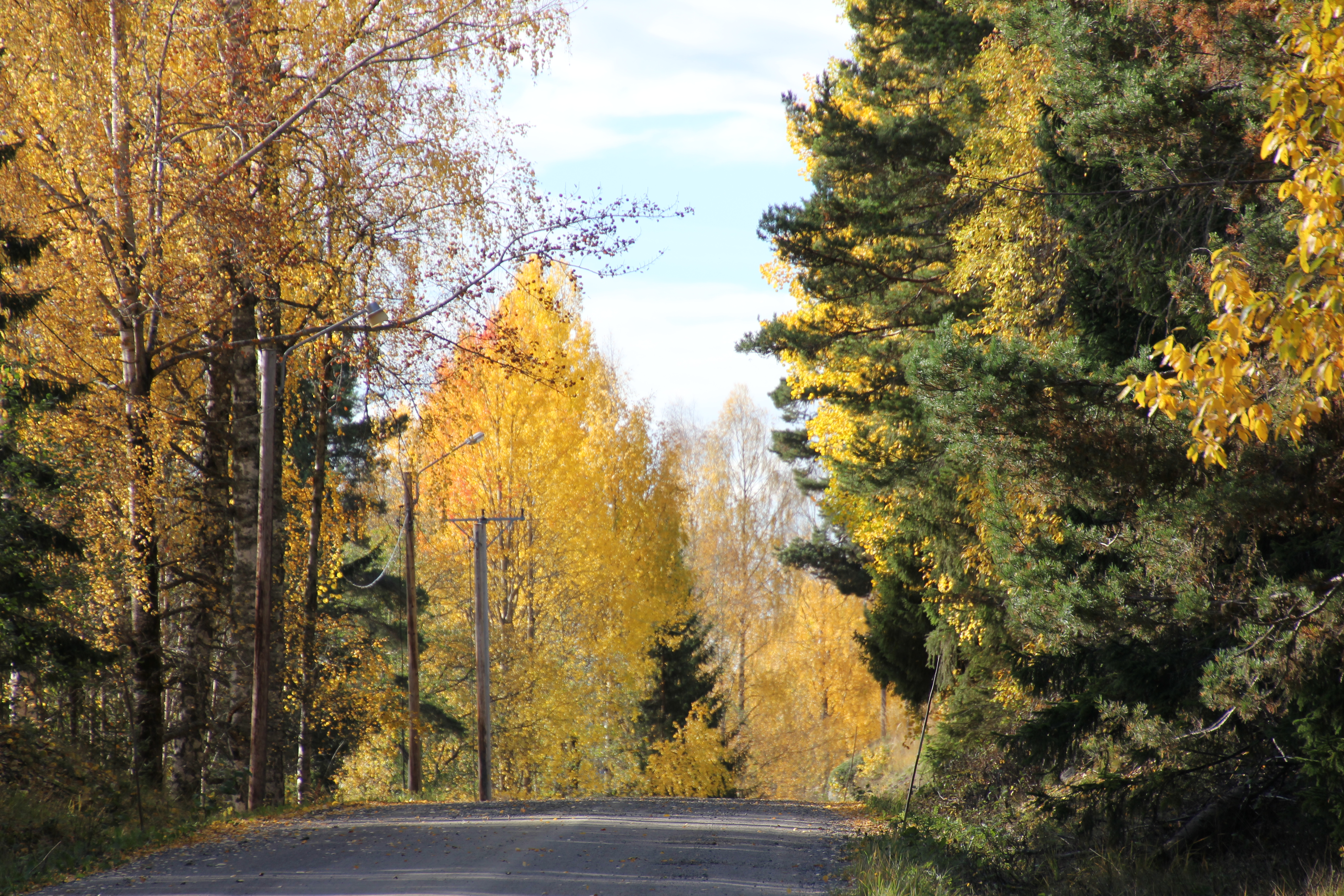 Det har redan börjat här i Jämtland och jag blir alltid så salig när färgerna börjar dra mot gult och orange. Guld och koppar. Finns det något vackrare än en asp i höstskrud? Ängsgräset i våtmarkerna ser så inbjudande ut, att jag skulle vilja lägga mig där och vila. Gör du det, säger maken med ett skratt. Jag gör det i min fantasi!