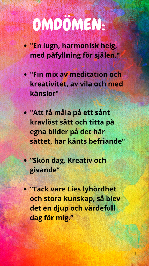 Det här är ingen kurs där du lär dig att måla. Det här är en helg där du hittar ditt uttryckssätt i harmoni och en möjlighet till personlig utveckling.