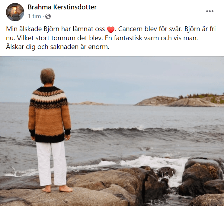 Jag fick lite tårar i ögonvrån där och då i bilen, men senare på kvällen när jag berättade för min man… då kom tårarna på riktigt och jag kände verkligen sorgen. Saknaden efter honom som man var. Innan han tynade bort. Sakta.