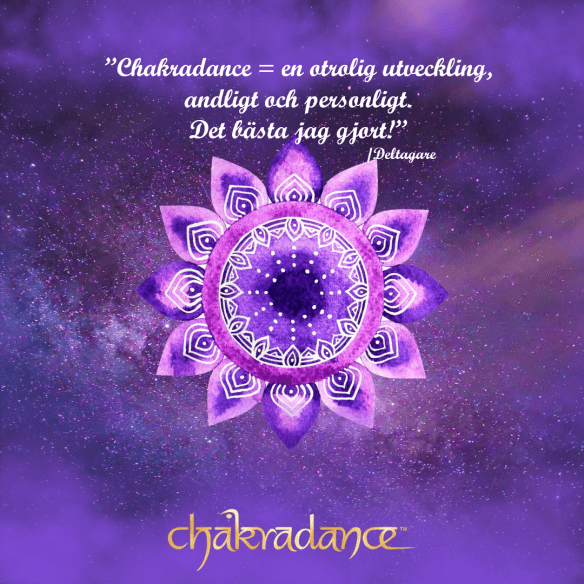 Chakradance™ är en form av näring för ditt sanna jag och för din själ. Genom att blanda fritt flödande rörelser – helt utifrån dina egna förutsättningar – med speciella ljudfrekvenser frigör Chakradance™ energin i din kropp och du får möjlighet att öppna dig för en djupare upplevelse av livet, via rörliga meditationer.