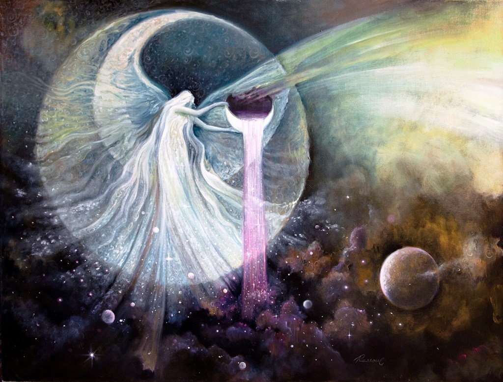 Eftersom jag drogs till den, är det mest troligt precis vad jag behöver nu och ska manifestera: leva i flow i månens energi, med tillit till min intuition och ”hitta hem” efter några turbulenta år. Kanske är det dags nu, att bara följa med? Ja, livet har ragit steg i den riktningen och jag misstänker att jag både kommer att få kraft och ork tillbaka. Harmoni.